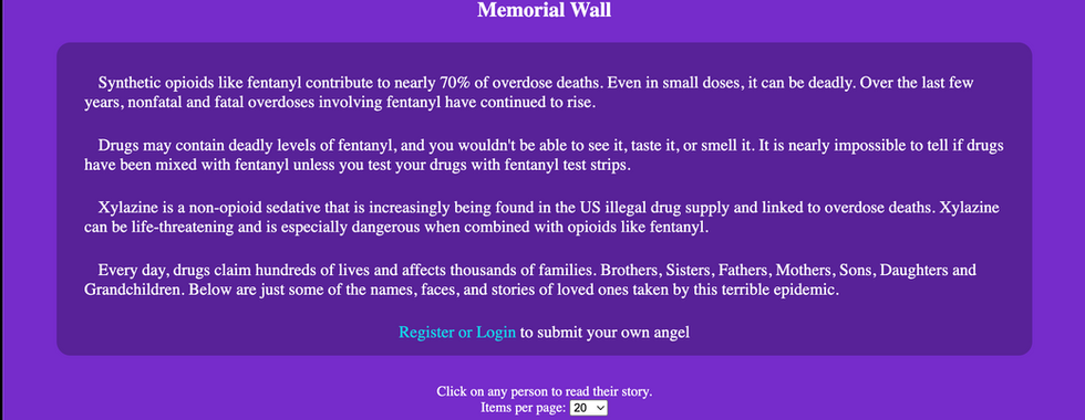 Memorial Wall - User Submitted Stories and Photos of loved ones that have been taken by the illicit drug crisis
